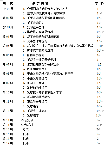 一、课程名称:大学体育之网球一