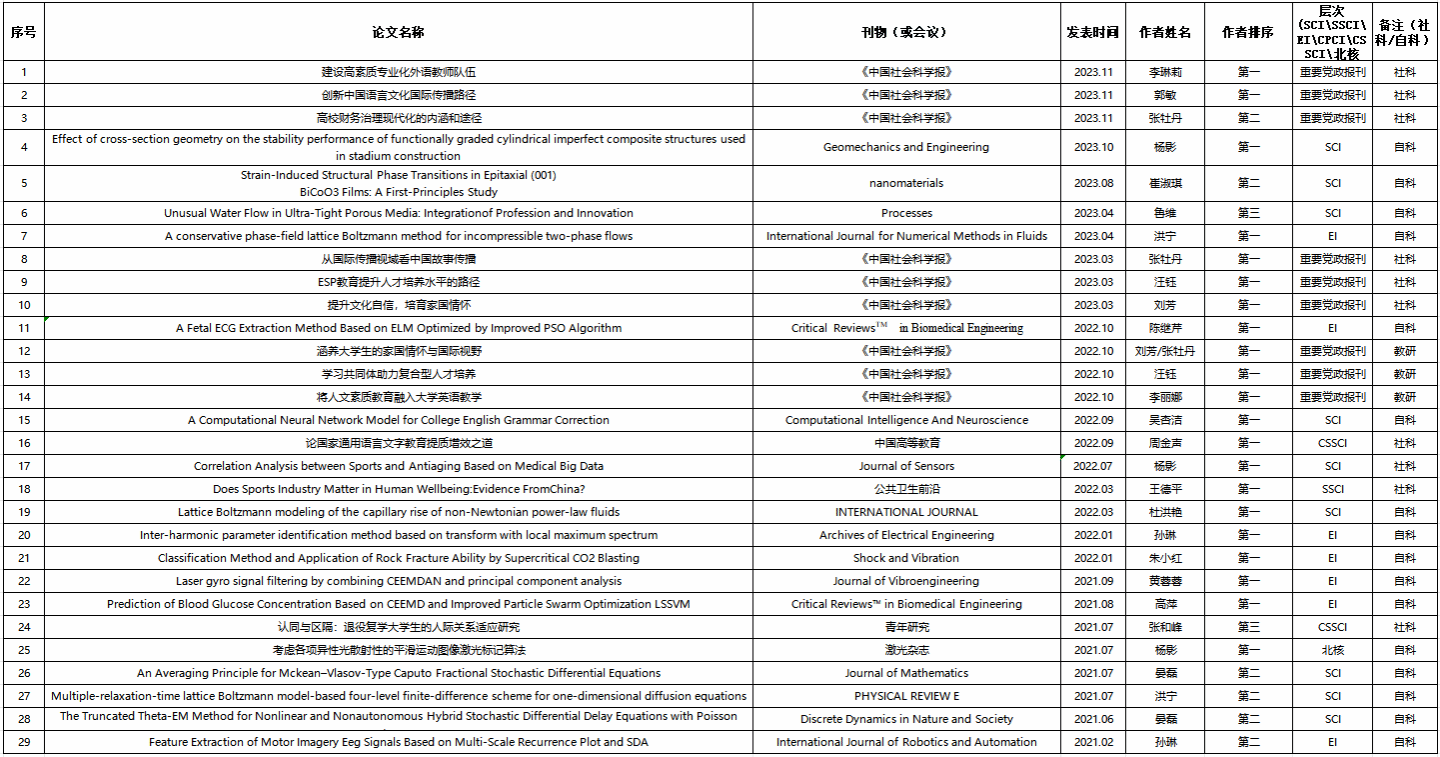 近年来,学院教师在《中国高等教育》《青年研究》《中国教育报》《中国社会科学》等学术期刊、重要党政报刊公开发表论文60余篇,其中SCI/SSCI/CSSCI/EI/CPCI检索论文40余篇,出版著作30余部、教材14部。