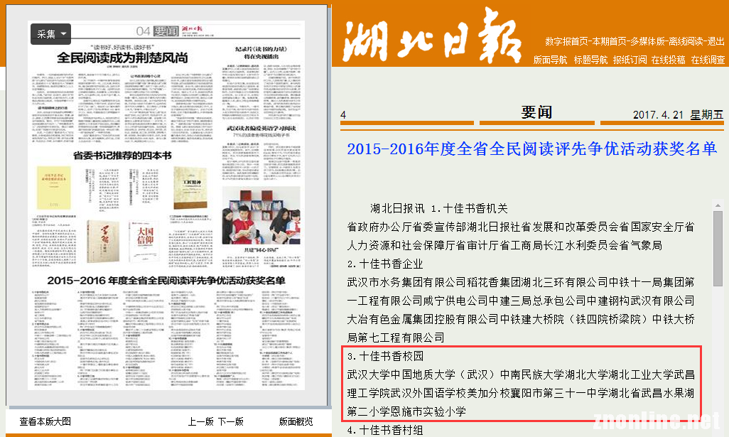 060net永利荣获湖北省“十佳书香校园”称号