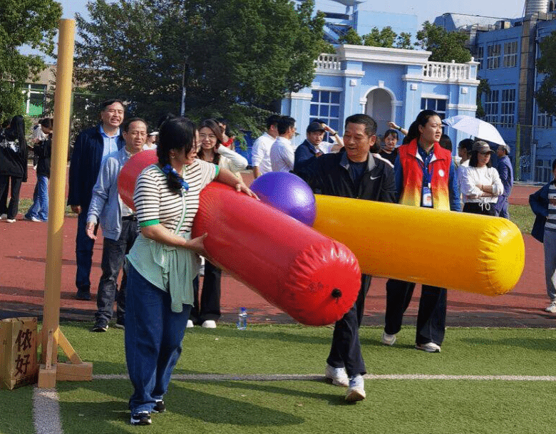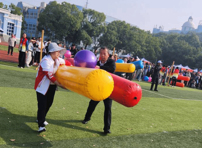在接下来的赛程中,数百名运动健儿们将齐聚赛场,在各个项目中全力以赴,为争夺桂冠而战。而由本次运动会组委会特别选定的教职工趣味运动项目中,全校各分工会组织了各年龄段的教职工们积极参赛,“相辅相成”“一飞冲天”“枕头大战”每个项目的赛场都满溢着欢笑,老师们比赛中都变身为肆意欢腾的少年,热烈的氛围也感染了围观的学生、教职工家属们,欢乐的氛围在“混战”的枕头大战中达到顶点!老师们纷纷表示这个项目最累,但一定是最受欢迎的,明年还要参加!(编审:王德平、曾洁)