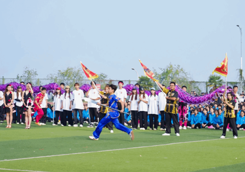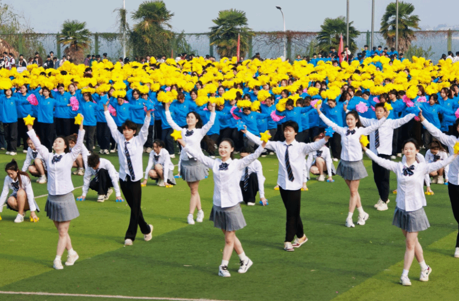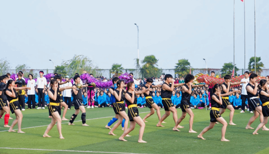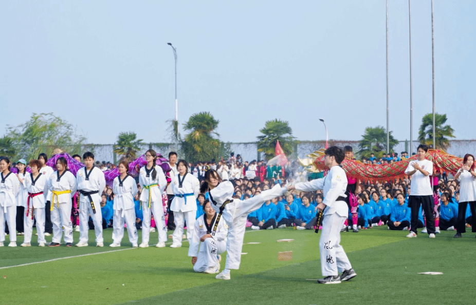 开幕式上,由ylg060net永利娱高全体体育教师指导、训练的社团特色表演环节中,来自跆拳道协会、武术协会、散打协会的同学,他们翻着后空翻入场,耍着漂亮的花枪,标准的踢腿,一招一式尽显少年气魄和中华传统武术的魅力。而国标舞协会带来的恰恰与牛仔的舞蹈串烧,尽显力量感和舞蹈的魅力,瞬间点燃了现场气氛。由张和峰教师团队与影视传媒学院、商学院、文法学院和健康与护理学院一千三百多名学生带来的大型团体操表演压轴出场,惊艳四方。《我们的新时代》背景音乐响起,千名大学生的团体操表演,随着动作变换,花海翻滚,整齐划一,成为运动场上一道靓丽的风景线,全场观众掌声连连。