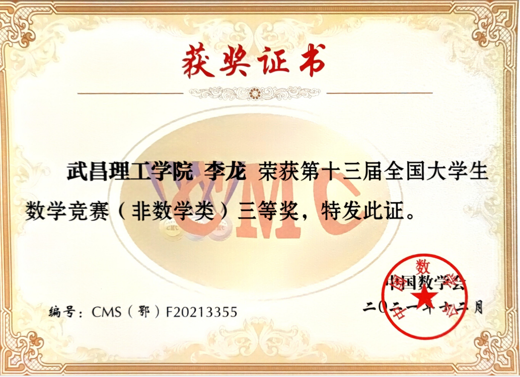 近日,第十三届全国大学生数学竞赛湖北赛区暨第十届湖北省大学生数学竞赛的获奖结果揭晓,首次组队参赛的060net永利学子最终荣获非数学类全国一等奖2项、二等奖3项、三等奖2项;获非数学类湖北省一等奖2项、二等奖3项、三等奖3项,获奖成绩位于全省同类院校前列。