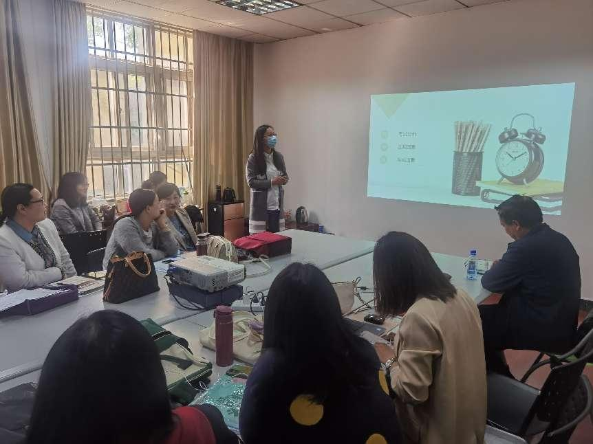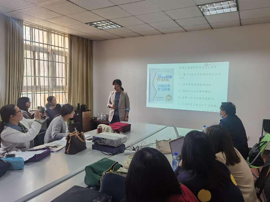 会议的第二项由2020级四级过级率优秀的四位教师代表分享教学经验。王虹力老师着重强调了在指导学生备考四级过程中强调心态和激励原则的的重要性;杜亚静老师提出要注重学习任务的检查、抓班风、做严师,师生双向奔赴;周云霞老师提出“2CS”原则,即要注重合作和建立联系;汪钰老师结合自己的教学实际分享了如何进行有效的小组活动、开展有效的课堂教学、开启高效备课。这四位老师的精彩发言赢得了与会老师们的热烈掌声,参会老师表示向优秀的同仁学习对自身也有很大的提高和促进作用。