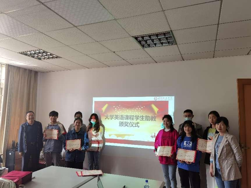 2022年4月18日下午,大学英语课部在行政楼112办公室成功举办大学英语课程优秀学生助教颁奖暨四级教学经验交流会活动。十名2019级优秀学生助教和大学英语课部全体教师参加了会议,彭贤则院长应邀指导会议。