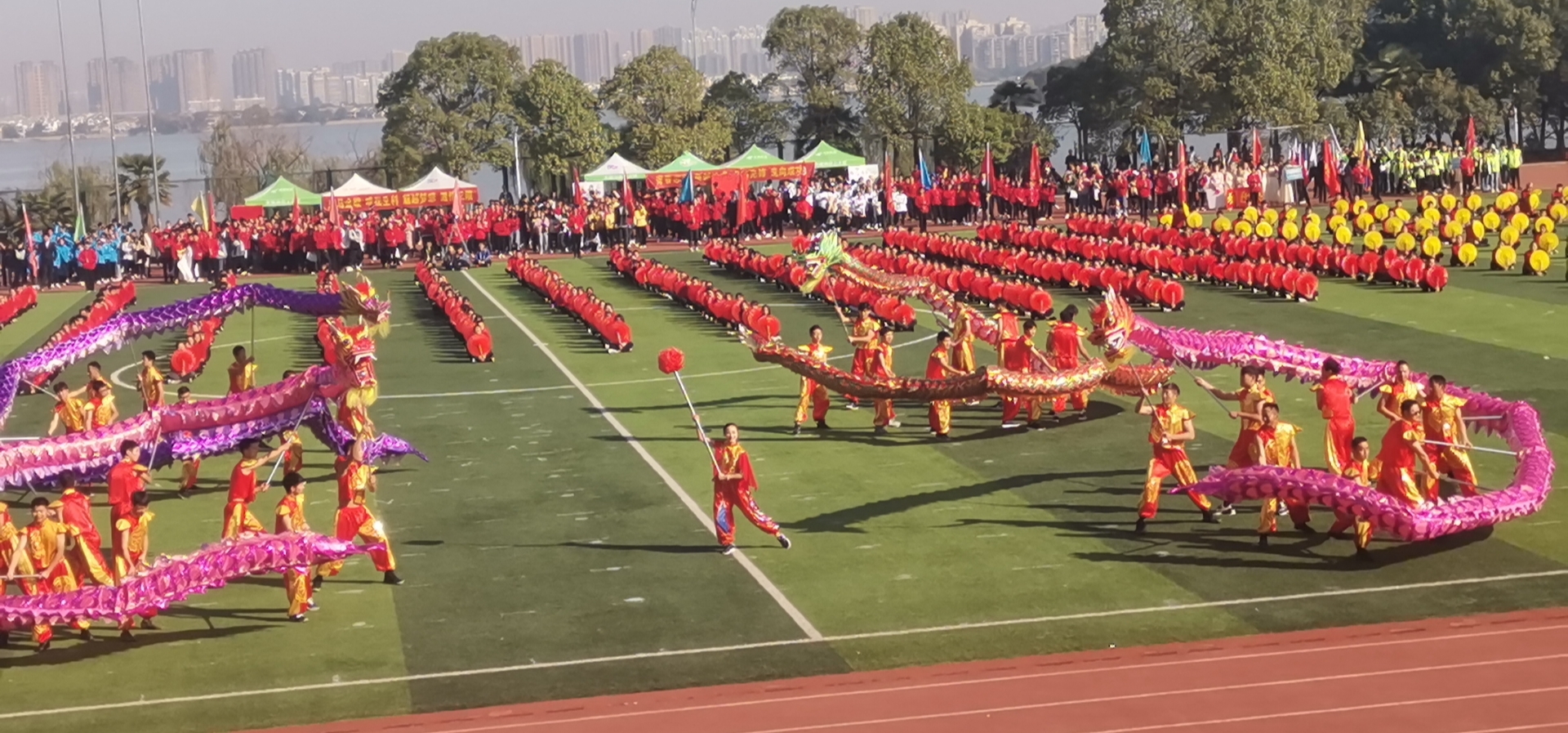 比赛首日第一项业余组传统舞龙项目比赛中,我们的队员紧握把杆,不敢有丝毫怠慢,翻,转,跳,躺......每一个动作,每一次步伐转换,精准自信、气势不凡;在次日的专业组竞速舞龙项目是比“传统舞龙赛”要求更为严苛的比赛,评定标准更为严谨、速度要求更快。但060net永利舞龙队的同学们丝毫不露怯,坚定自信,蜿蜒腾挪中向所有评委、观众展现了他们对舞龙艺术最优秀表演。