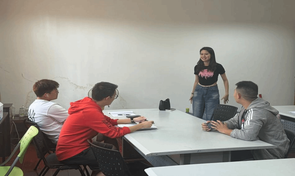 校级选拔赛结束后,大学英语课部组织专门教师团队指导晋级省赛的两位同学。连续两周,每周一到周五中午,演讲指导组教师与同学放弃午饭、午休时间,指导老师与两位同学就不同的话题,研讨思路,现场指导,对学生的文本进行修改,帮助学生快速有效备赛省赛。