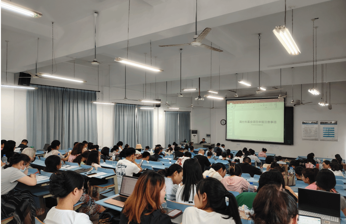 韩东副部长首先介绍了今年国家社科基金项目申报政策的变化、需要重点注意的问题以及今年湖北省项目申报情况。然后他重点跟老师们交流了项目申报中存在的申报书撰写不规范、申报人前期研究基础薄弱、申报单位把关力度不够等问题。针对这些问题,韩东副部长提出宝贵建议,对申请单位,他建议要严格把关、择优推荐,深入动员、用心培育,加强科研组织、涵养优势特色;对申报人,他建议要认真学习申报文件精神,严格按照要求撰写申报书,做好经费预算和材料装订。