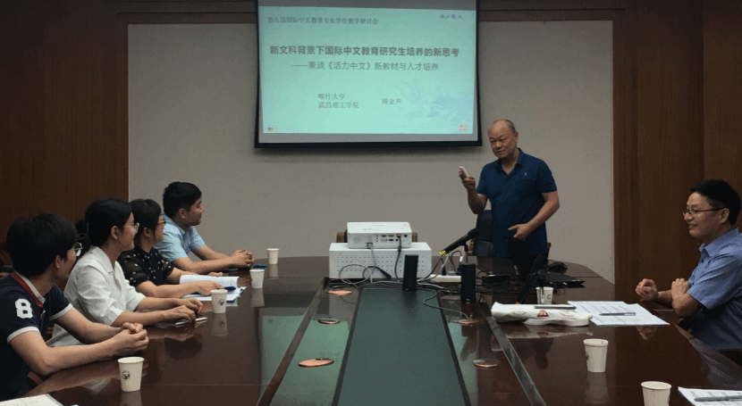周金声教授被选定为第四分会场“面向区域国别的师资培养”的主持人,并在第九分会场“面向传播能力的人才培养”做了《新文科背景下国际中文教育研究生培养的新思考》主题发言。发言中,周教授论证了“中文”与“汉语”的关系新认识,提出要构建中国特色的文字语言学理论体系,坚持党中央提出的“守正创新”理念,培养文化自信自强的国际中文教育人才,还介绍了落户于本院的教育部语合中心重点项目成果创编的《活力中文》的实践经验,引起了与会者强烈的共鸣,多位老师、博士表示积极参与进一步的研发。